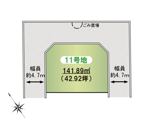 - 二方(南東 公道 4.7m 間口 10.3m)(北西 公道 4.7m 間口 10.3m)